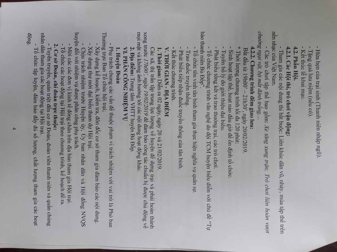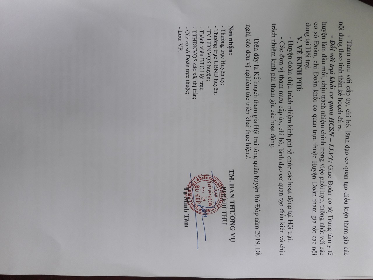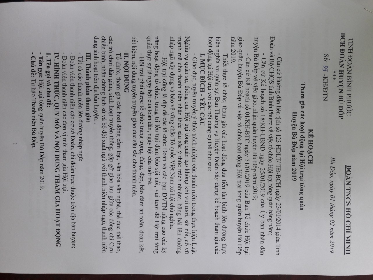 166 Số 39-KH/ĐTN 31/01/2019 Kế hoạch tham gia các hoạt động Hội trại tòng quân huyện Bù Đốp năm 2019