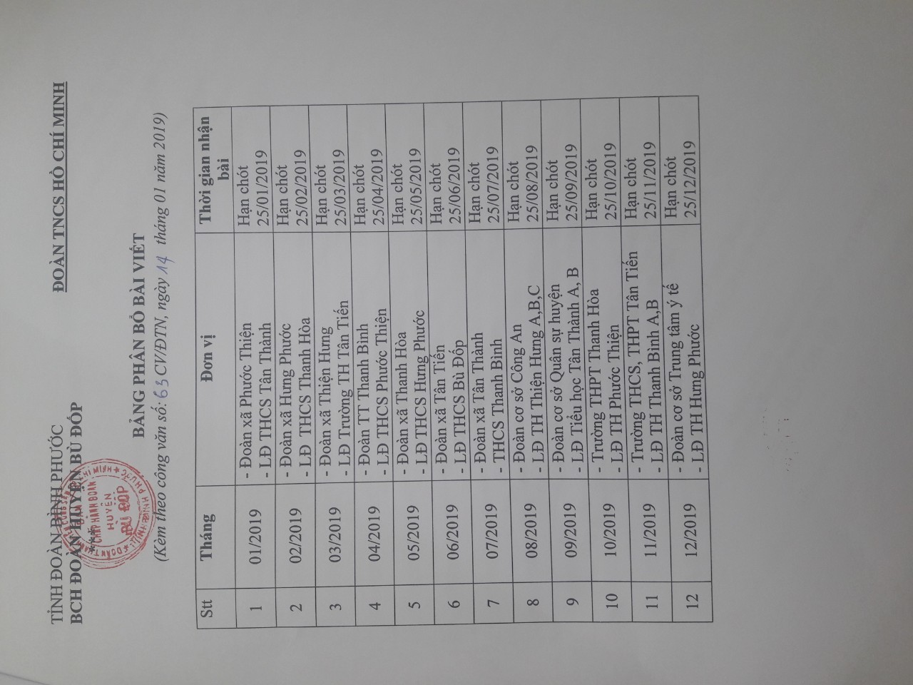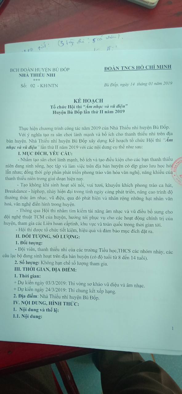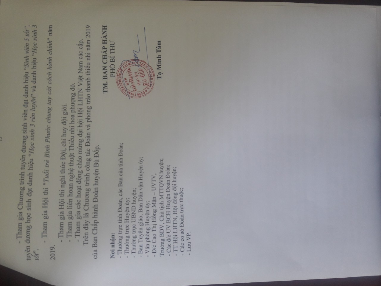 166 Số 39-KH/ĐTN 31/01/2019 Kế hoạch tham gia các hoạt động Hội trại tòng quân huyện Bù Đốp năm 2019