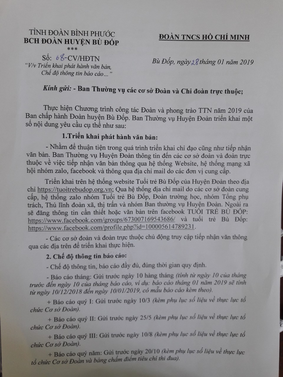 169 Số 68-CV/HĐTN 27/01/2019 Công văn triển khai phát hành văn bản, chế độ thông tin báo cáo