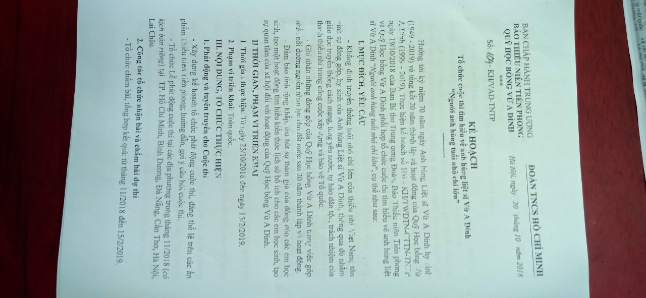 Công văn về việc thực hiện công trình măng non chào mừng 80 năm ngày thành lập Đội TNTP Hồ Chí Minh